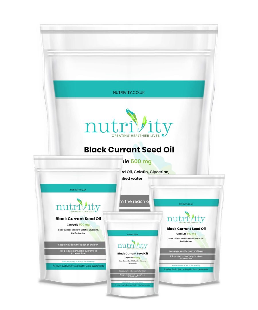 - Strength: 500mg blackcurrant seed oil per softgel